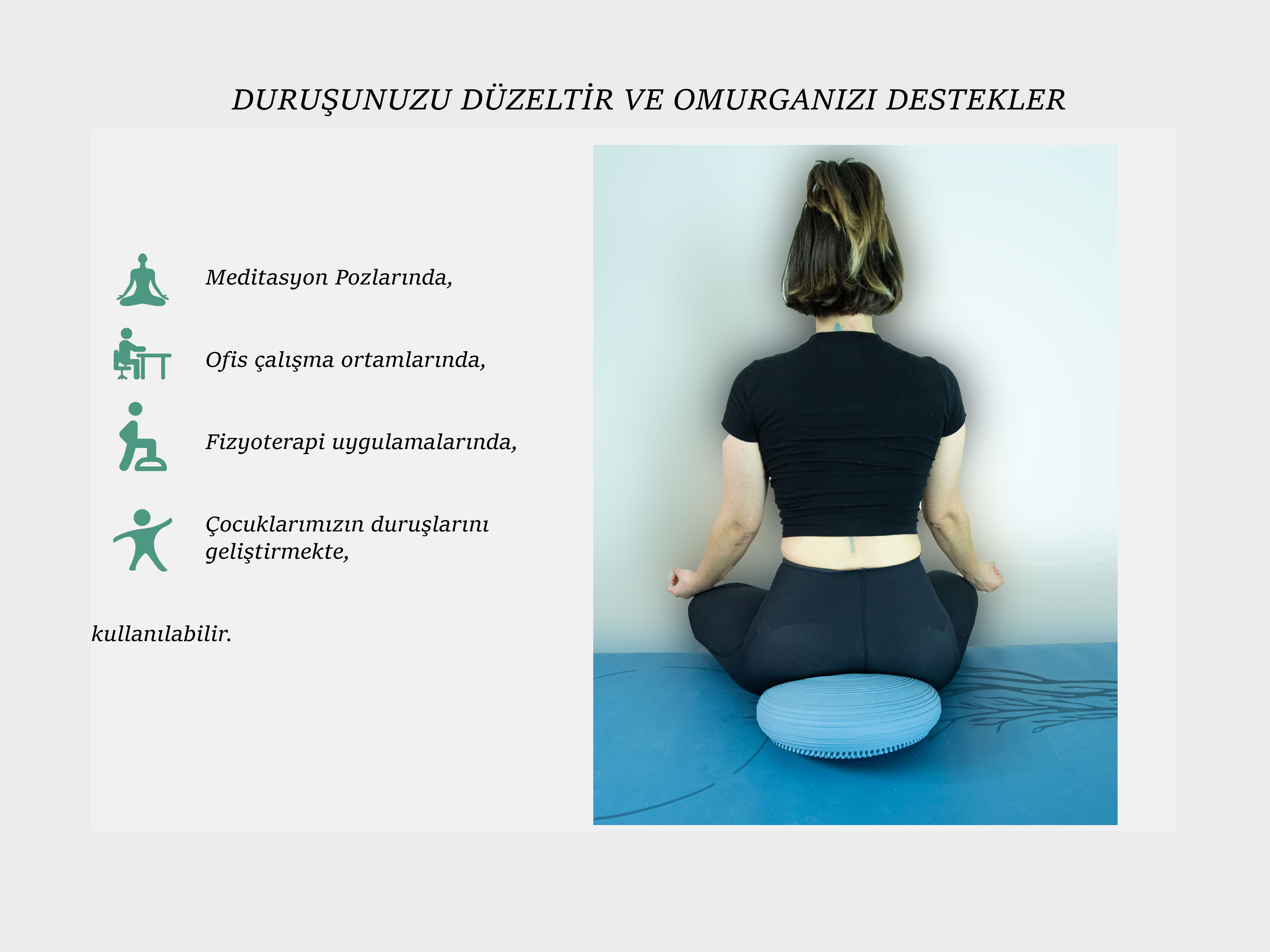 Denge diski denge ve güç isteyen egzersizlerinizde temel destekçiniz olmak için tasarlandı. Denge diskimiz fitness rutininizi geliştirmek, sakatlık iyileşme süreçleriniz ya da aktif oturma pozunuzu iyileştirmek için kusursuz yardımcınız olacaktır. 1. Yüksek kaliteli materyal: Denge diskimiz sağlam ve yüksek kalite materyalden, konfor ve rahatlığınız için üretilmiştir. Uzun ömürlü bir kullanım sunar. Doğa ve ten dostu materyali ile güvenli ve konforlu egzersizler sunar. 2. Egzersiz veriminizi arttırır: Denge diskimiz egzersizlerinizde denge, duruş ve koordinasyon sağlamanıza destek olarak kaslarınızın gelişimini hızlandırırken, kas ve eklemlerinizin desteklenmesini sağlar. 3. Yoğunluk ayarı: Hediye hava pompası ile kolayca diskin içerisindeki hava miktarını egzersiz ihtiyacınıza göre ayarlayabilirsiniz. Sönük bir disk ile egzersizlerinizi daha zorlayıcı bir hale getirebilir, şişkin bir disk ile daha stabil ve kontrollü bir egzersiz yapabilirsiniz. 4. Ofis için ideal: Denge diski egzersizler için harika bir araç olmakla beraber, ergonomik bir şekilde oturmanıza son derece destek sağlar. Eğer saatlerce bilgisayar başında oturuyor ve/veya oturmak zorunda kalıyorsanız, denge diskinizi sırt ağrılarınızı gidermek ve oturuş pozunuzu düzeltmek için kullanabilirsiniz. Denge diski kaslarınızı ve omurganızı destekleyerek sağlıklı bir otuma düzeni almanızı sağlar. 5. Çocuklar için uygun: Çocuklarımızın gelişim çağında duruş bozukluklarının önüne geçmek maksadıyla kullanılmaktadır. 6. Fizyoterapi uygulamaları: Fizyoterapi uygulamalarında önemli bir yardımcıdır. 7. Portatif: Havasını indirerek çantanızda taşıyabilir ve sağlıklı yaşam dostunuzu dilediğiniz yere götürebilirsiniz. Egzersizlerinizi ilerletin, kas ve eklemlerinizi koruyun ve düzgün oturmanın keyfini sürün. Denge diskinizi hemen edinerek sağlığınıza yatırım yapın.